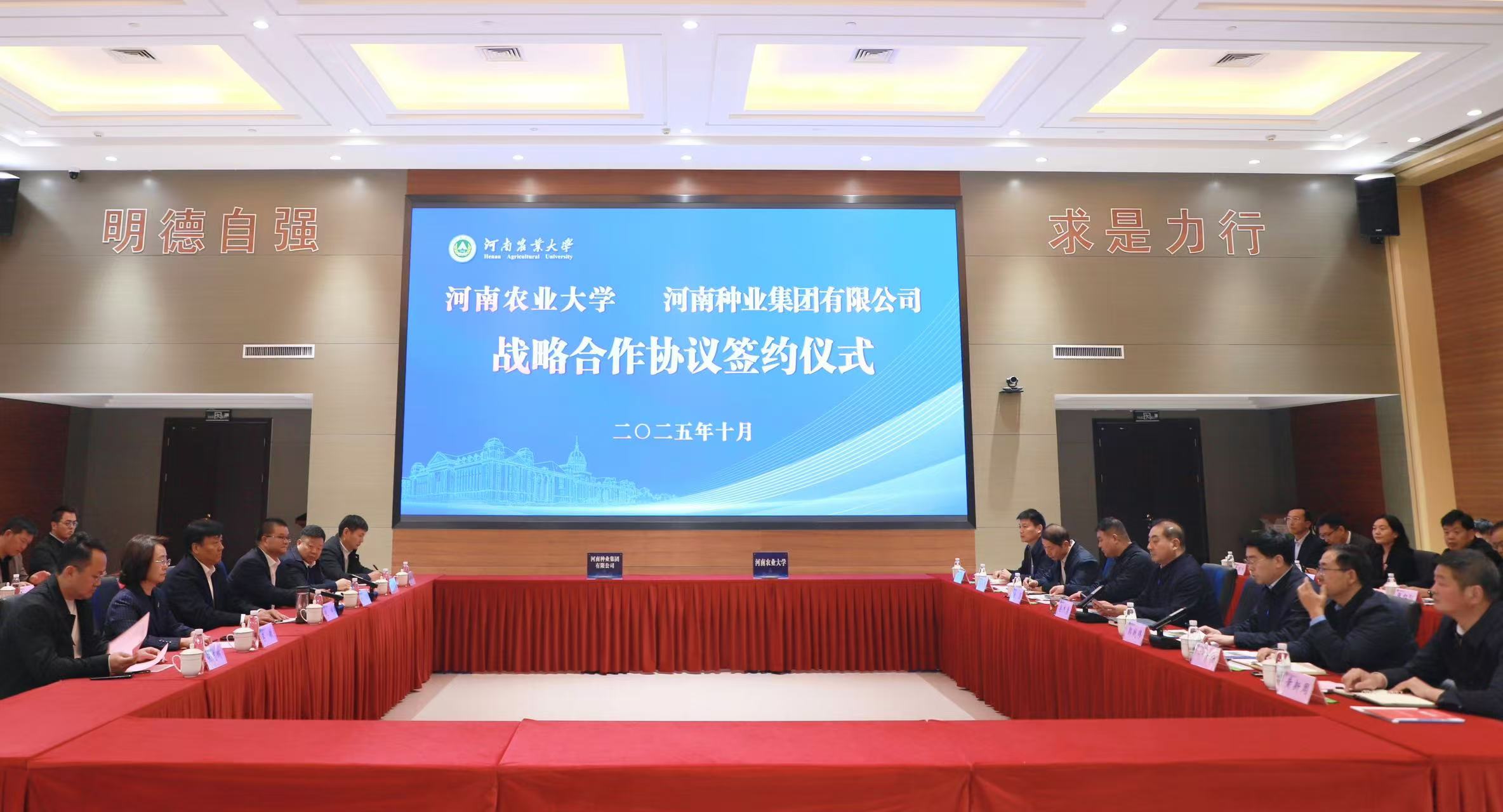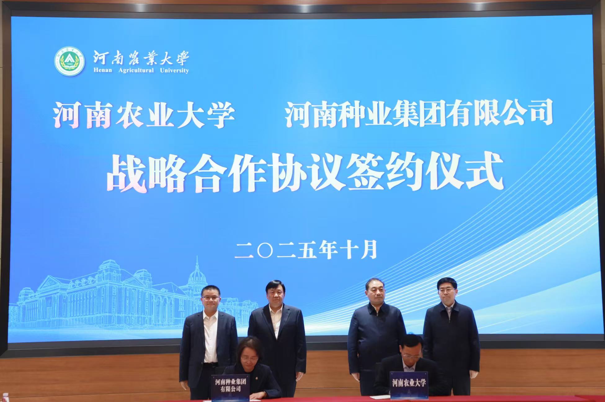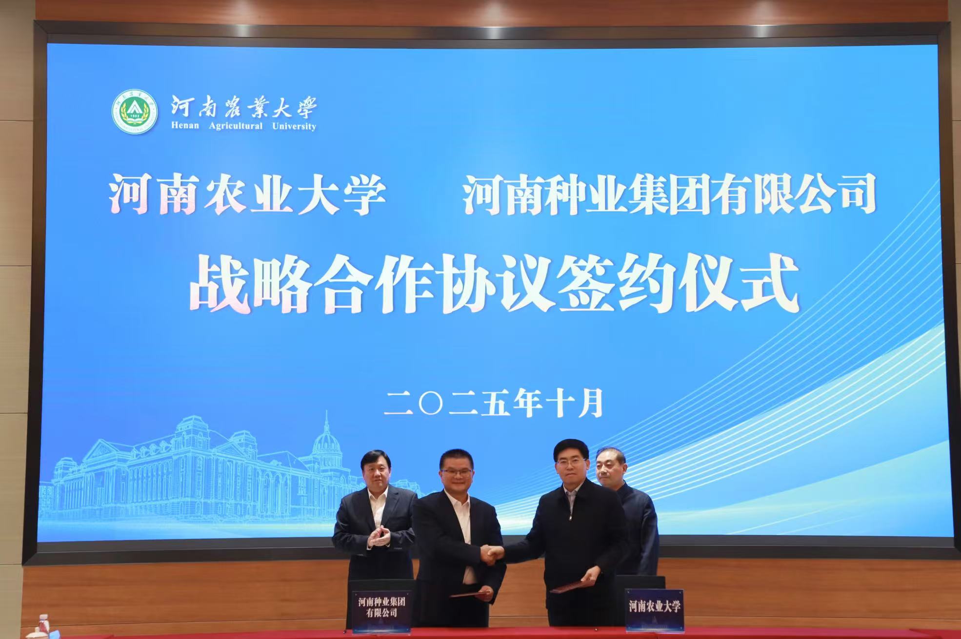2025年10月20日,河南种业集团与河南农业大学签署全面战略合作协议。集团核心子公司河南秋乐科技股份有限公司、河南省鼎元种牛育种有限公司同步与河南农业大学农学院、动物科技学院签订技术开发协议。河南农业大学党委书记岳杰勇,河南种业集团党委书记、董事长赵博出席签约仪式并致辞。