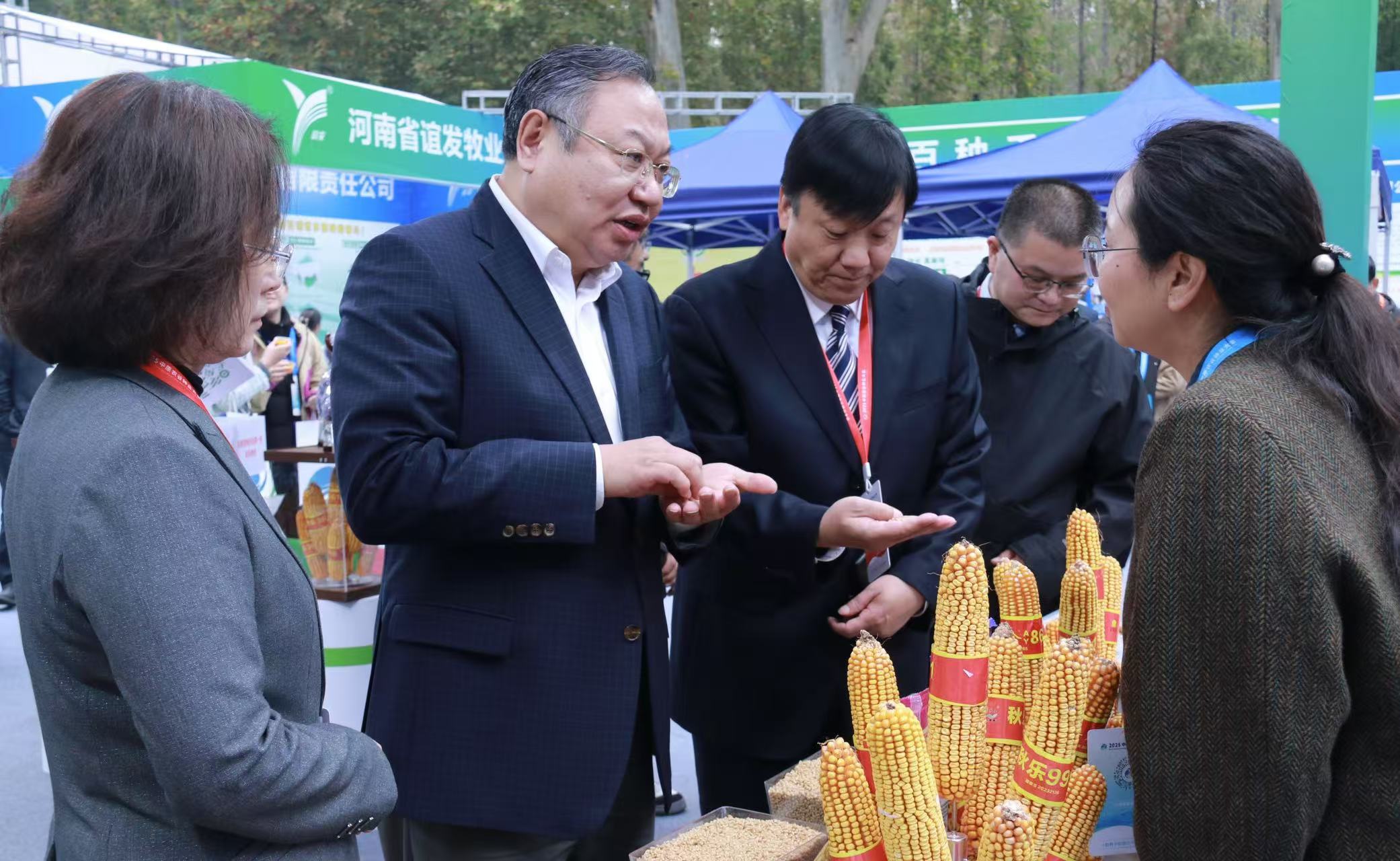 图为张新友(左二)莅临河南种业集团展位参观指导