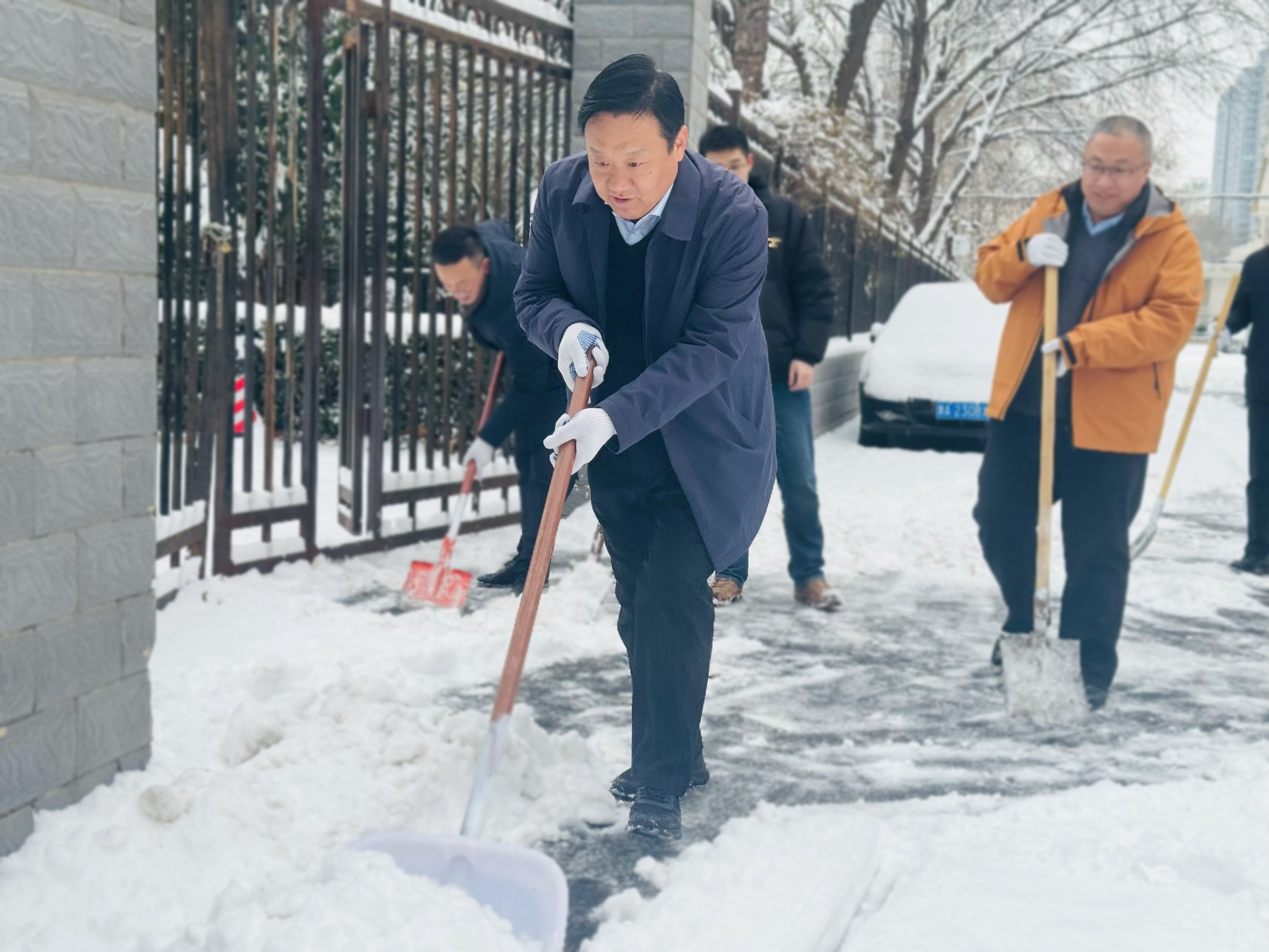 在农业路办公区,机关党支部和秋乐种业党支部党员干部充分发挥先锋模范作用,以“排头兵”姿态冲锋在前、带领广大志愿者迅速投入清扫行动。大家手持铁锹、扫帚等工具,分工明确、协作高效,对主次人行道、出入口等关键区域的积雪、残冰开展拉网式清理,精准排查每一处易滑死角,做到不留隐患、不漏盲区。凛冽寒风裹挟着碎雪,却挡不住党群同心攻坚克难的热情,大家顶风冒寒、挥锹扫雪,用实干驱散冬日寒意,用坚守诠释责任担当。